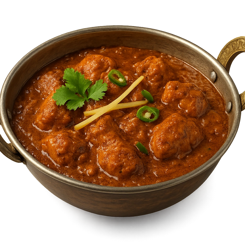 Spicy chicken cooked with vibrant herbs, tomatoes, onions, and hand-ground Balti spices for bold flavor.