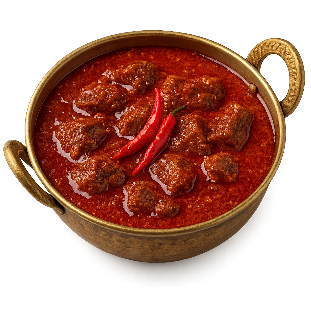 Spicy Goan-style beef curry with tangy vinegar and bold aromatic spices for a fiery flavor experience.