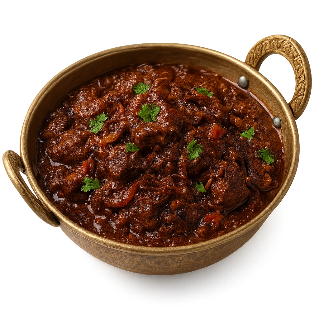 Spicy, tender beef sautéed with onions, tomatoes, and aromatic Indian spices for rich flavor.