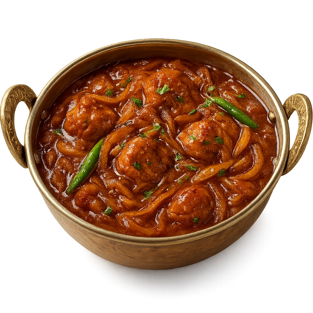 Tender chicken cooked with sautéed onions and aromatic spices for a flavorful Indian curry experience.