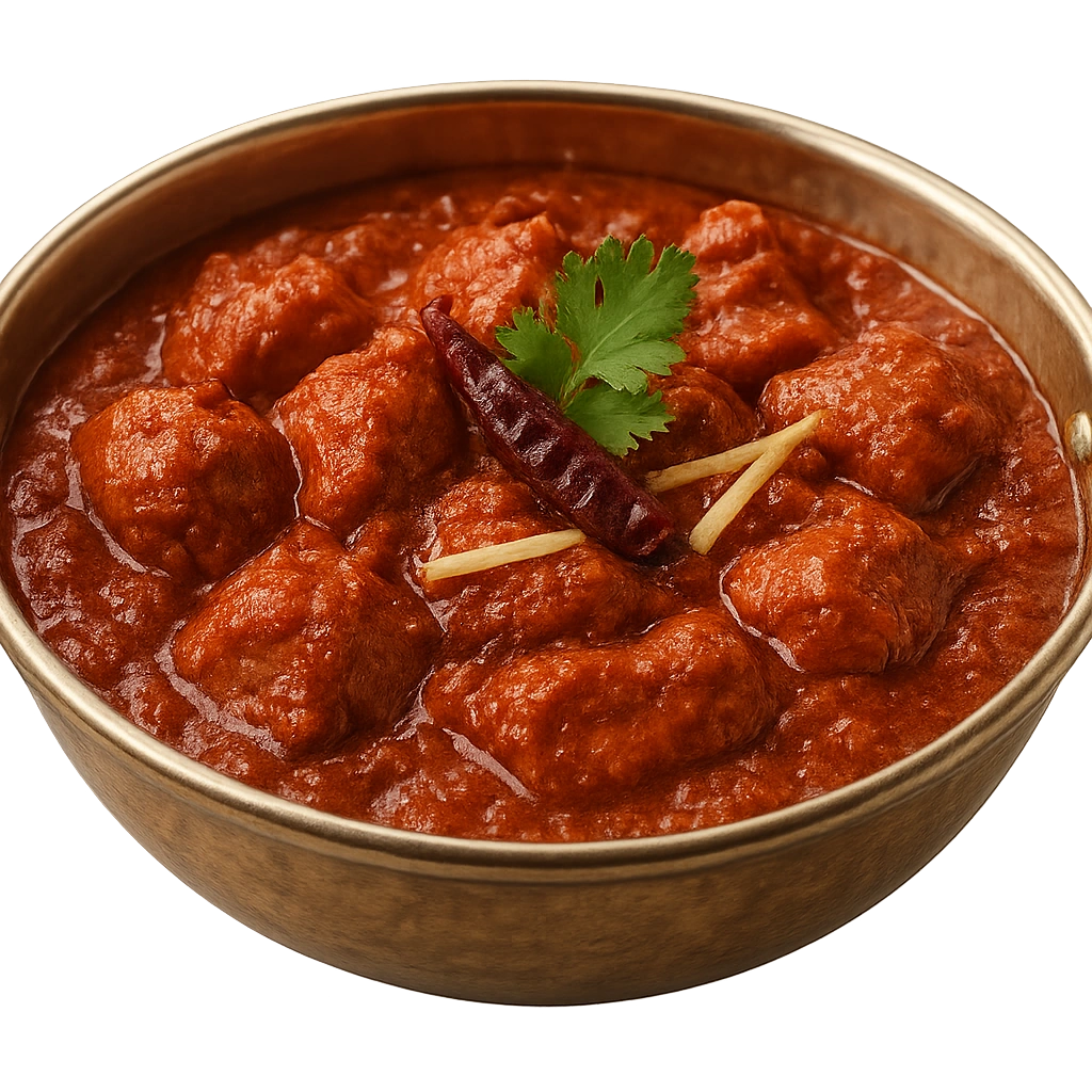Spicy Goan-style chicken curry simmered in tangy vinegar, garlic, and an aromatic blend of spices.