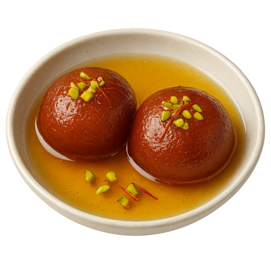 Soft milk dumplings soaked in fragrant rose-flavored sugar syrup, a classic Indian dessert.