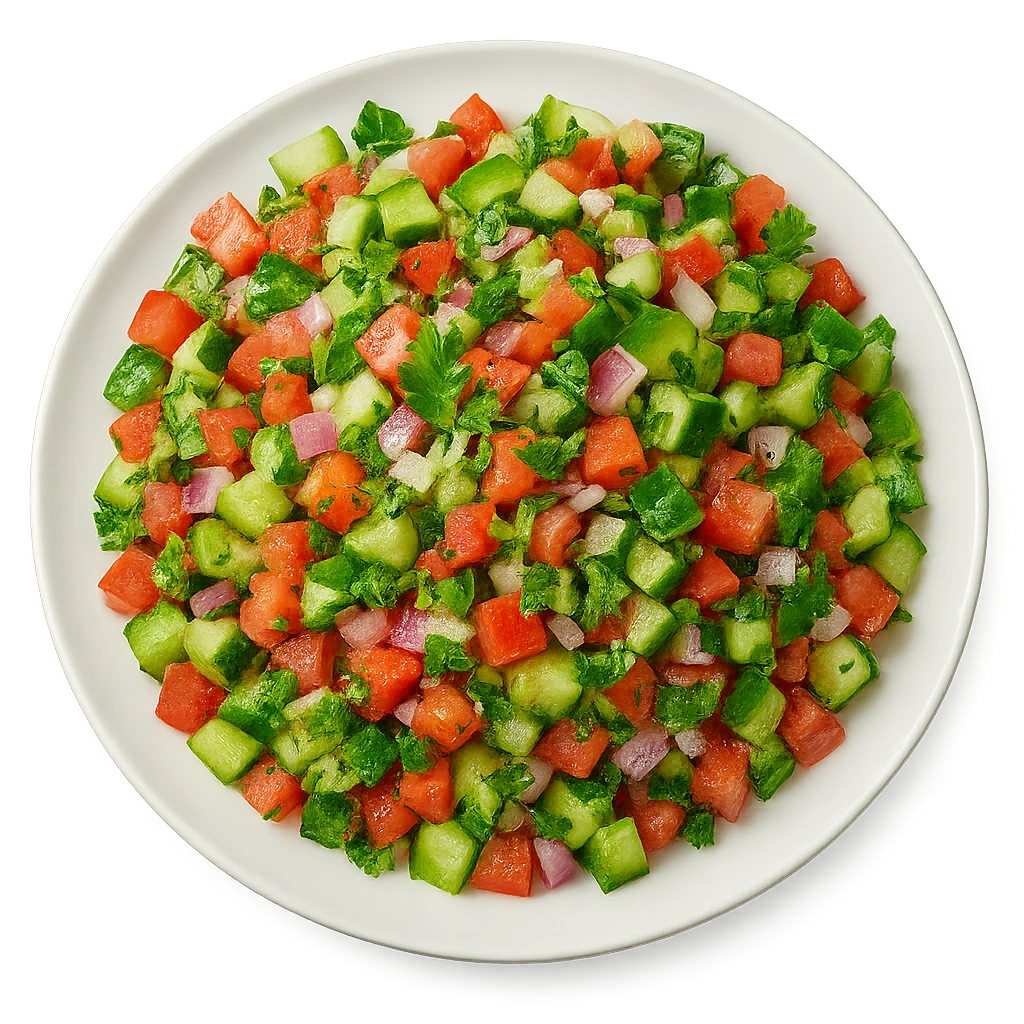 Fresh cucumber, tomato, onion, and chili tossed in tangy lemon and spices.