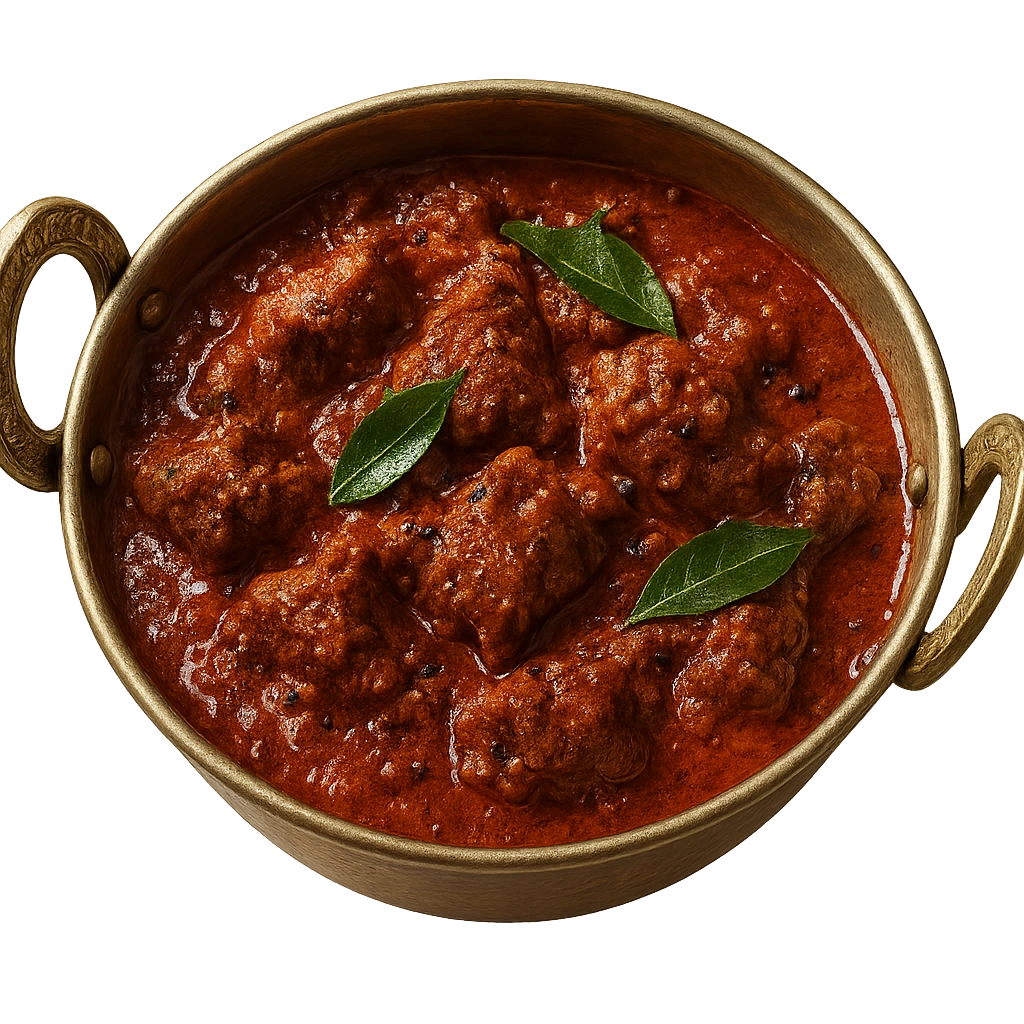 Spicy lamb curry simmered with tangy tomatoes, mustard seeds, and aromatic Madras spices.