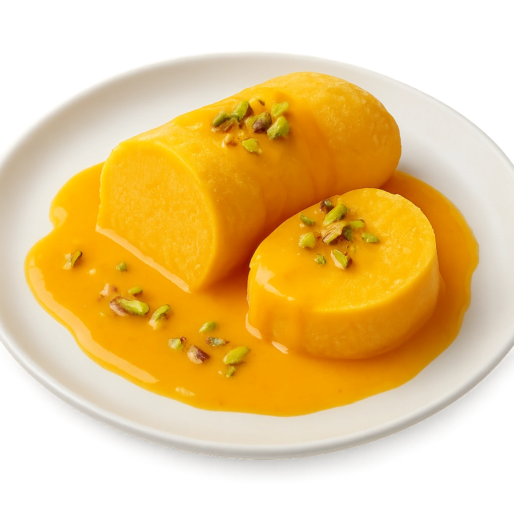 Creamy mango-flavored Indian ice cream infused with mango pulp.