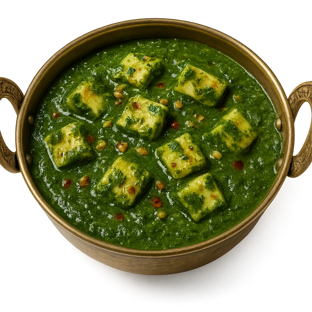 Creamy spinach cooked with soft, homemade paneer cubes and traditional Indian spices.