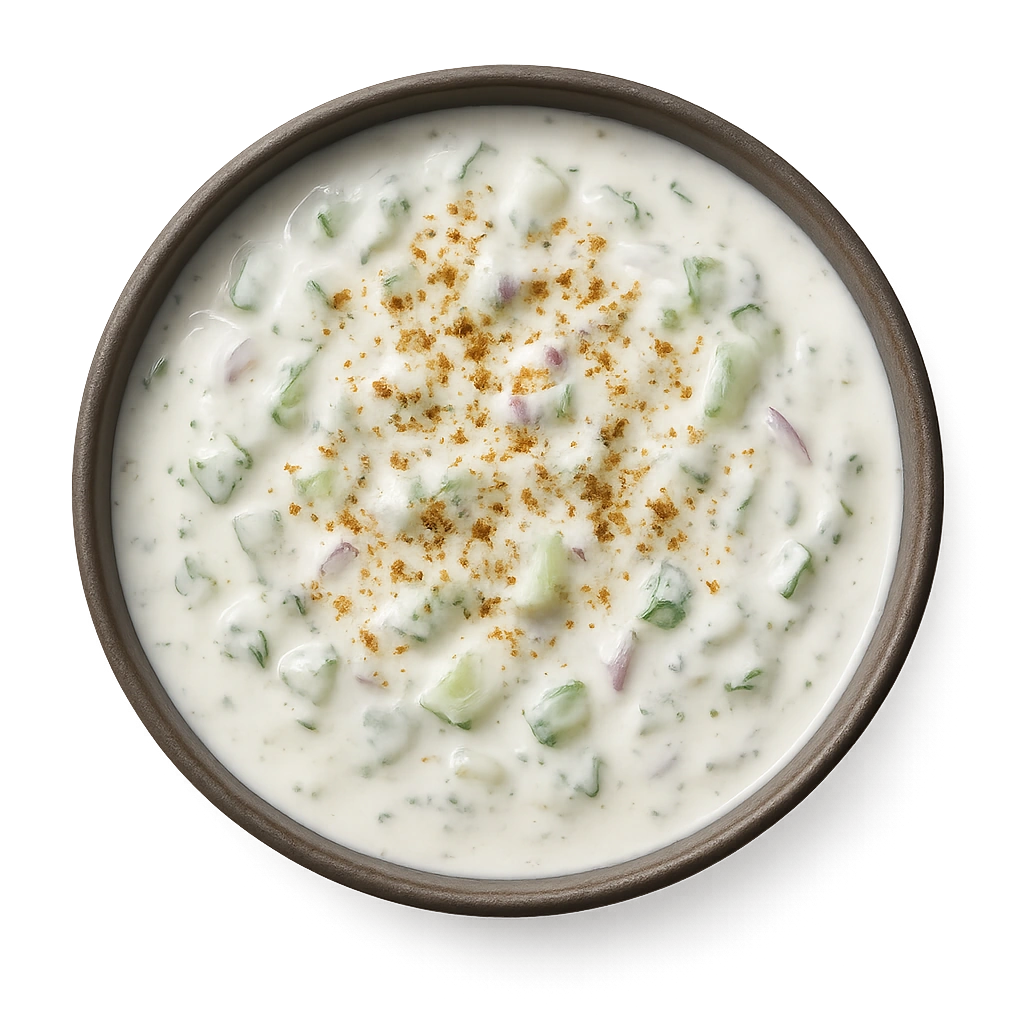 Creamy yogurt mixed with cucumber, mint, and spices for a cooling, refreshing flavor.