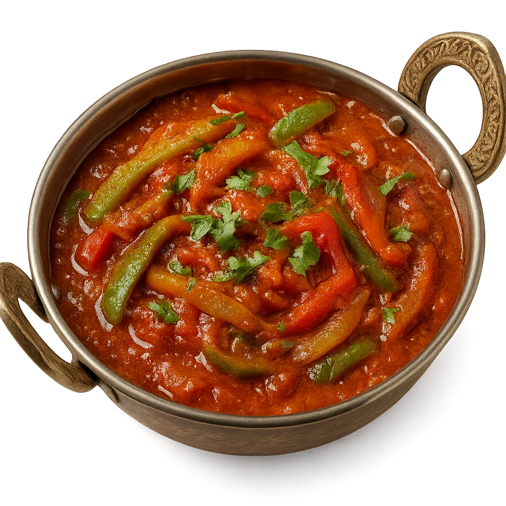 Sautéed mixed vegetables in a rich, aromatic tomato and spice sauce, bursting with vibrant flavors.